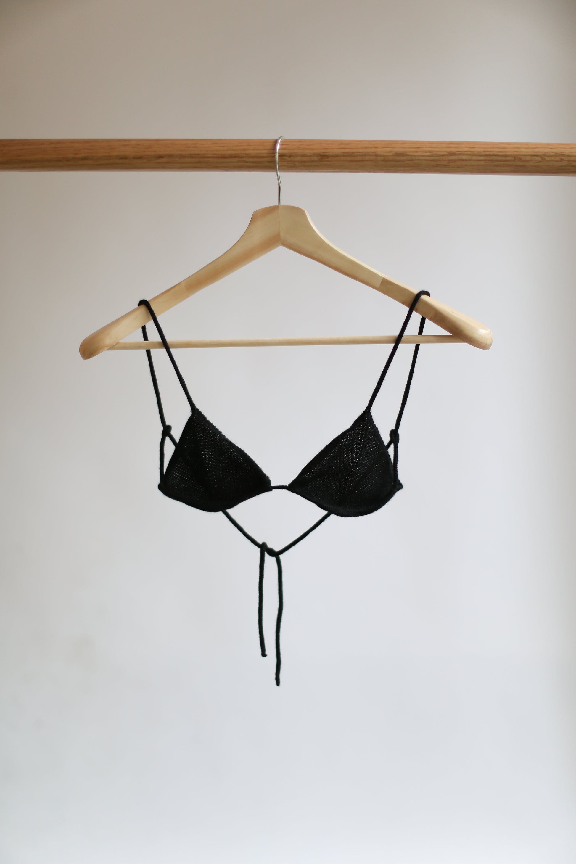 Designed for casual wear, the bralette is crafted from baby alpaca—an exceptionally soft, warm, and breathable fiber—perfect for layering or wearing directly against the skin. It features adjustable straps that can be worn straight or crossed at the back for added versatility.